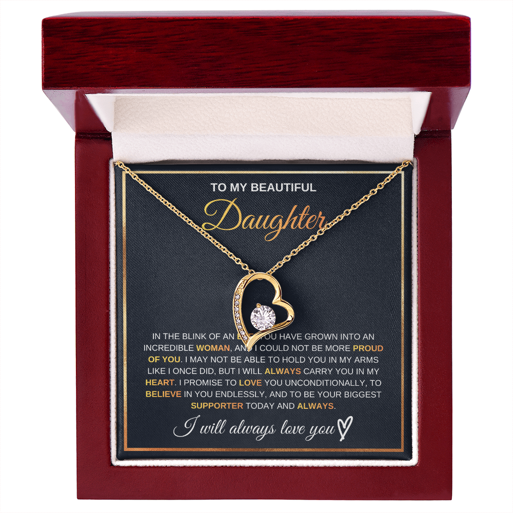 In the blink of an eye, you have grown into an incredible woman, and I could not be more proud of you. I may not be able to hold you in my arms like I once did, but I will always carry you in my heart. I promise to love you unconditionally, to believe in you endlessly, and to be your biggest supporter today and always.