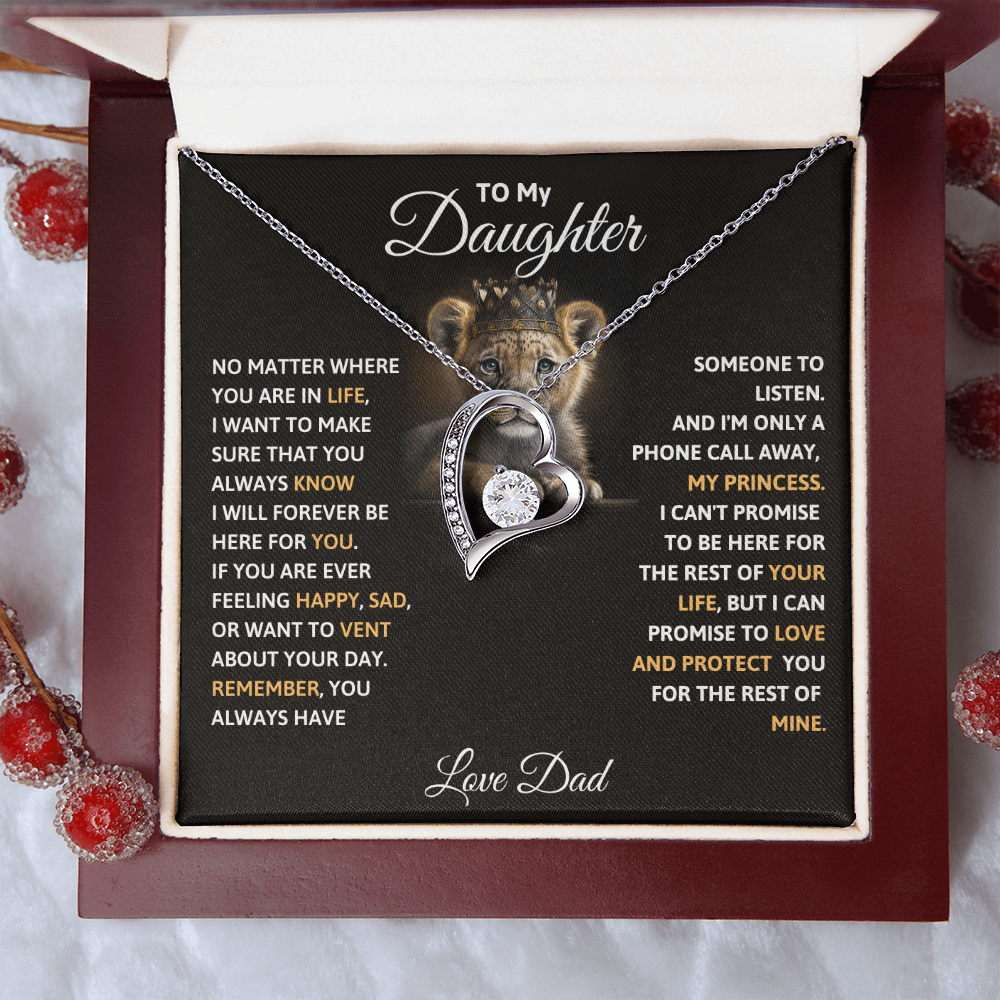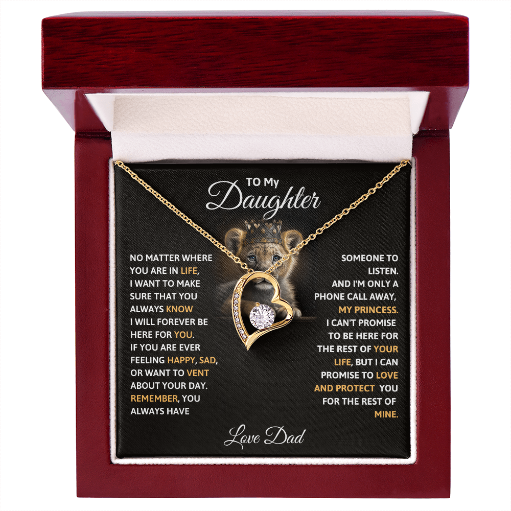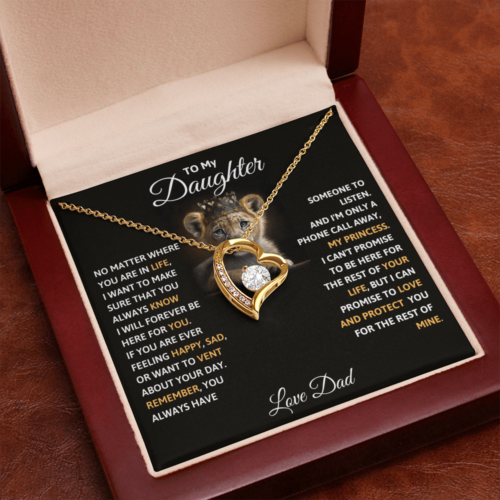 To my daughter: No matter where you are in life, I want you to always know I will forever be here for you—whether you're happy, sad, or just need to vent about your day, remember you always have someone to listen, and I'm only a phone call away, my princess; I can’t promise to be here for the rest of your life, but I promise to love and protect you for the rest of mine.