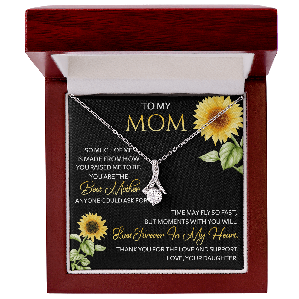 Imagine her reaction when she opens this stunning gift! The Alluring Beauty necklace features a petite ribbon shaped pendant that is sure to dazzle your special someone. Whether it's a birthday or anniversary, make sure to get her a gift she will love for years to come.