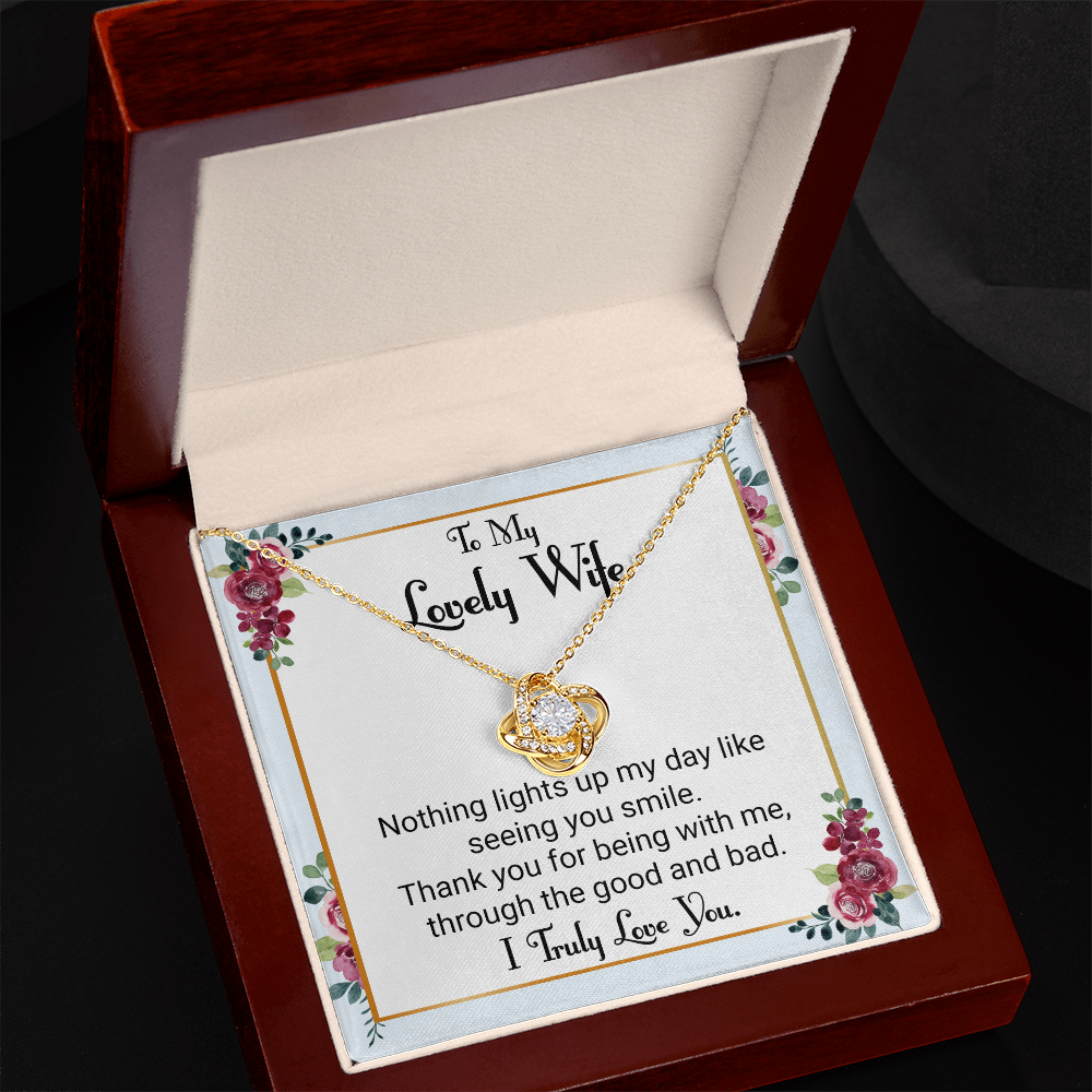 Imagine her reaction receiving this beautiful Love Knot Necklace. Representing an unbreakable bond between two souls, this piece features a beautiful pendant embellished with premium cubic zirconia crystals. Surprise your loved one with this gorgeous gift today!